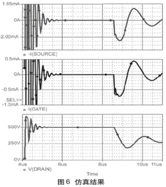 作為典型實例,諧振頻率在500kHz的范圍內(nèi),從漏極平臺到谷點的電壓變化為100V。根據(jù)式3,一般柵極電流峰-峰值幅度的大小是10mA。負值部分的范圍是5mA。