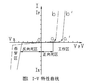 為反向飽和電流。V>0 時,V>VF 的正向工作區IF 隨VF 指數上升,
