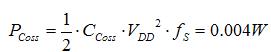 對于BUCK變換器,工作在連續模式時,開通時MOSFET的電壓為輸入電源電壓。當工作在斷續模式時,由于輸出電感以輸出電壓為中心振蕩,Coss電壓值為開通瞬態時MOSFET的兩端電壓值,如圖2所示。