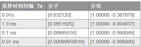 這樣做的目的是為了將內(nèi)部采樣偏移 (inter sample deviation) 控制在可以接受的最小范圍內(nèi)。為說明這種情況,表 1 列出了采樣率變化時(shí)對(duì)控制器系數(shù)的影響。在此例中,我們將一個(gè)簡(jiǎn)單的單極點(diǎn)傳輸函數(shù)進(jìn)行了離散處理。(1) 為傳輸函數(shù)的關(guān)系式。