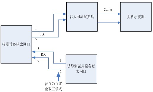 100Base-TX接口的測試采用業內比較通用的誘導發包的方法來引導DUT發出擾碼后的IDLE進行測試,更多細節請參考美國力科公司《Ethernet solution-QualiPHY》專項技術文檔,
