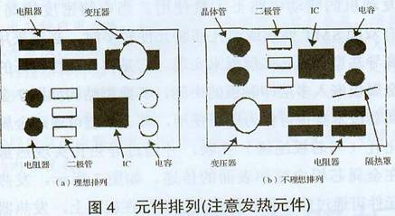 因此,具有相同水平的耐熱元件混合排列時,基本排列順序是:耗電大的元件、散熱性差的元件應裝在上風處。