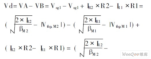 那么利用PMOS的飽和區電流公式可得M1與M2的具體尺寸。為使此時電壓比較器A1性能更佳,設定VB為VDD的一半,可求出R2阻值,再根據公式(2)得到的電阻比例,便可得到R1阻值。