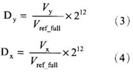 ADS7846內(nèi)部可以通過寄存器的設(shè)置A/D轉(zhuǎn)換器的分辨率設(shè)為8位或12位,在本系統(tǒng)中A/D轉(zhuǎn)換器的分辨率取12位。則P點(diǎn)的二進(jìn)制輸出代碼為: