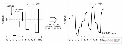 圖2:LTC6909的偽隨機調(diào)制和內(nèi)部跟蹤濾波器。