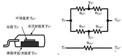 通過(guò)二極管的壓降和通過(guò)的電流,可以計(jì)算功耗;通過(guò)二極管的壓降可以查到結(jié)溫,根據(jù)功耗、結(jié)溫和器件裸露銅皮或與芯片內(nèi)部襯底相連的管腳的溫度,可以計(jì)算得到RθJC或RθJL。根據(jù)功耗、結(jié)溫和環(huán)境溫度,還可以計(jì)算得到RθJA。