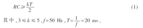 整流濾波電路主要由整流橋堆和大容量濾波電容組成, 如圖2 所示。整流橋堆具有體積小巧、輸出電流大、安裝方便等優勢, 并能代替由4 只二極管組成的傳統橋式整流電路。濾波電路采用大容量電解電容濾波,增加了輸出電壓的穩定性。根據式(1) 可求出所需濾波電容容量。