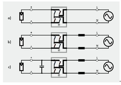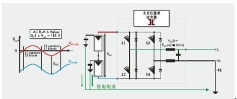 將來自光伏組件的電壓采用高頻率(20kHz)轉(zhuǎn)換過程中,高頻電壓應(yīng)等同于電網(wǎng)電壓峰值;這些電壓在逆變器內(nèi)部被認(rèn)為是干擾,濾波器可以阻斷這些干擾,防止其進(jìn)入電網(wǎng)。但在理論上,阻止來自發(fā)電電源側(cè)的直流分量進(jìn)入交流電網(wǎng)是不可能絕對實現(xiàn)的。