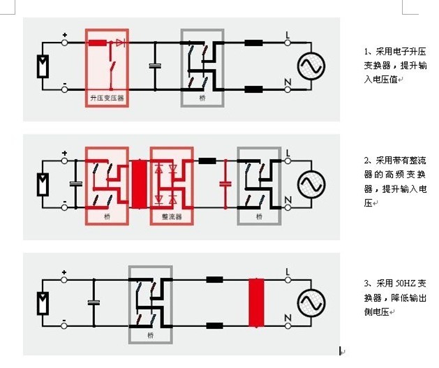 與標(biāo)準(zhǔn)逆變器的基本設(shè)計不同,直接并網(wǎng)逆變器有很多方法來調(diào)整或提升輸入電壓范圍。常用的逆變器技術(shù)方案與結(jié)構(gòu)都各不相同: