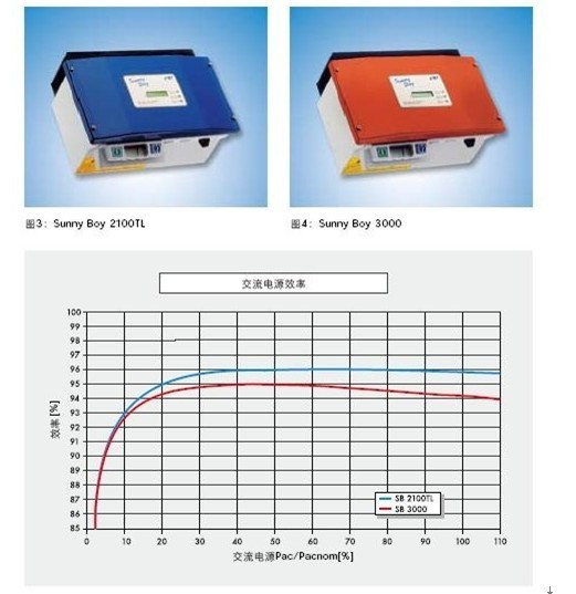 圖5:外觀相同,內(nèi)部電路不同:變壓器型和無變壓器型兩種Sunny Boy效率特性。