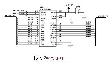 通過軟件參與設置,很容易得到全頻段內的預置誤差數據。對于2-20GHz的微波振蕩器,如果每隔5MHz設置補償一個點,那么存儲器至少需要3600個地址空間,在此選擇8k×8靜態存儲器芯片,存儲空間滿足要求。在時鐘的同步控制下,地址生成器產生對應地址,該系列數據被存入RAM中,電路如圖5所示。