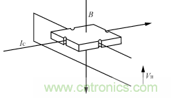 式(1)中,若保持控制電流IC不變,在一定條件下,可通過測量霍爾電壓推算出磁感應(yīng)強(qiáng)度的大小,由此建立了磁場與電壓信號的聯(lián)系。根據(jù)這一關(guān)系式,人們研制出了用于測量磁場的半導(dǎo)體器件,即霍爾器件。