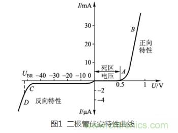 提到二極管,大家最熟悉的就是二極管的單向?qū)щ娦裕从撤睬€上如圖1所示。當(dāng)正向偏壓U=0.5V(硅管)時,二極管開始導(dǎo)通,電流越大電壓越大,具有很低阻抗;當(dāng)加反向偏壓時二極管不導(dǎo)通,在一定范圍內(nèi)有很小的漏電流,具有很大阻抗。其這個單向?qū)щ娦裕财鸬搅碎_關(guān)的作用,所以在整流和開關(guān)方面都有廣泛的應(yīng)用。