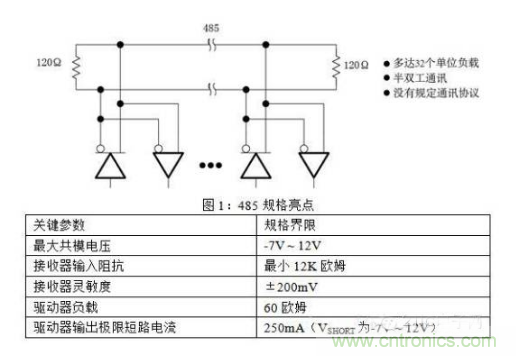 只要接收器的輸入阻抗大于12k?,那么可以在一根傳輸總線上使用多于32個這樣的收發器。