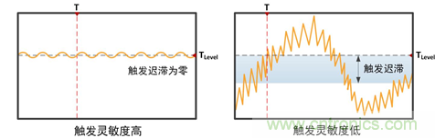 圖10 靈敏度高低對信號觸發的影響