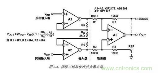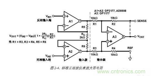 到這里,我們導出了這個經典電路的;來龍去脈: 差分放大器--》前置電壓跟隨器--》電壓跟隨器變為同相放大器--》三運放組成的儀用放大器。