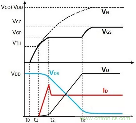 圖1:功率MOSFET的開通過程