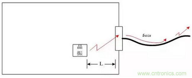 7、非屏蔽電纜原則上禁止直接從屏蔽體中出線。特殊情況下允許直接出線,但是要求屏蔽體內側(或者外側)電纜的長度不得越過80mm,注意這個尺寸包括PCB上面的走線,如果有濾波電路,指濾波電路與屏蔽體之間的電纜長度。