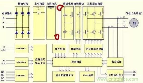 下圖是常見(jiàn)類(lèi)型的變頻器的整機(jī)電路框圖
