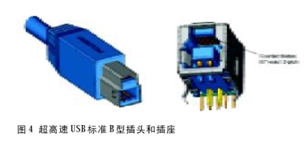 解決方案:在現有插頭和插座的插入面新增5 條導線。這樣就提供了與USB 2.0相同的機械接口,提供了完整的后向兼容性(見圖3~圖5)。現有的Micro-B 型插座(見圖5)無法提供空間用于新增5條導線,因此需要進行較大的更改,用同時提供2.0和3.0接口的方案。這種連接器應該只用于小型的便攜式設備。為了避免不正確的插入,超高速USB Micro-A和AB型連接器與Micro-B 型連接器在咬合栓和輪廓方面是不同的,但在其他方面則完全相同。與機械后向兼容性一樣,這樣做的目的是保留大量的設備驅動基礎設施。相同的數據傳輸類型、中斷、塊狀和等時存儲設備都保留了下來。最后,這個標準保留了現有USB的易用性。