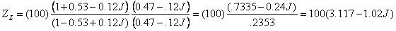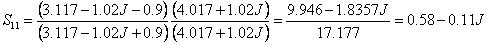 舉個例子,用100歐姆阻抗表征的復合回波損耗S11 = 0.53 - 0.12J 轉(zhuǎn)換到90歐姆的如下: