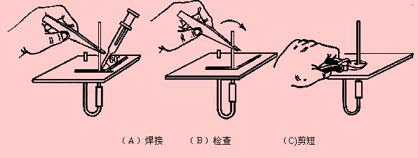 4.用鑷子轉動引線,確認不松動,然后可用偏口鉗剪去多余的引線。