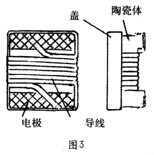 還有一種片式繞線電感是采用H型陶瓷芯,經過繞線、焊接、涂復、環氧樹脂灌封等工藝制成,見圖3,由于電極已預制在陶瓷芯體上,制造工藝更加簡單,而且可以進一步小型化。這類電感的電感量較小,但自諧振頻率高(通常為5~6GHz,最高達12.5GHz),更適合高頻使用。