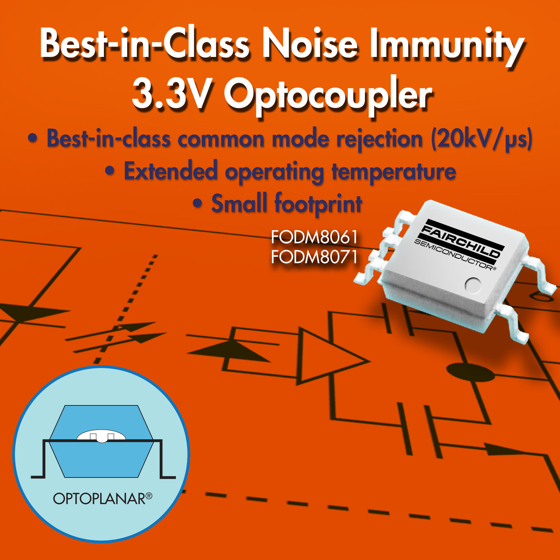 FODM8061帶有集電極開路輸出,而FODM8071則帶有邏輯門輸出,兩款產品均具有20kV/µs的業界最高共模抗噪性能(CMR) ,并支持-40º至+110º C的寬廣工作溫度范圍,因而能夠適應嚴苛的工業環境。