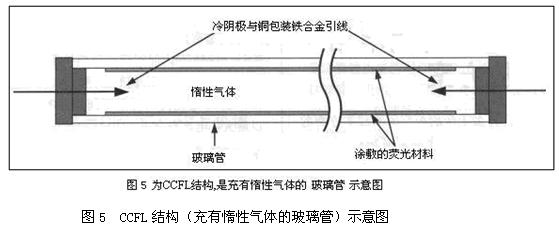 冷陰極熒光燈(CCFL)是一種長而細(xì)的密封玻璃管,內(nèi)充惰性氣體(圖5)。