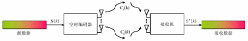 空時編碼通過在發(fā)射端的聯(lián)合編碼增加信號的冗余度,從而使信號在接受端獲得分集增益,但空時編碼方案不能提高數(shù)據(jù)率。空時編碼的系統(tǒng)框圖參見圖2。