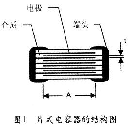 圖1表明,片式疊層陶瓷電容器是一個多層疊合的結構,其實質是由多個簡單平行板電容器的并聯體。因此,該電容器的電容量計算公式為
