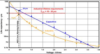 隔離器的預計使用壽命由經時擊穿(TDDB)決定,其為一種二氧化硅等電介質材料的重要故障模式。由于制造帶來的雜質和不完整性缺陷,電介質會隨時間而退化。這種退化會由于