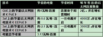 特別需要指出的是,結合節能以太網技術和節能以太網供電技術的參考交換機系統產品,證明可以節省大量的電能。請查看以下表格: