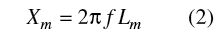 這里:Pg=源的最大可用功率、Pc=負載功率、Rg=源阻抗、Xm=磁抗。最后這個參數可通過下式由工作頻率f和磁芯的磁化電感Lm求得: