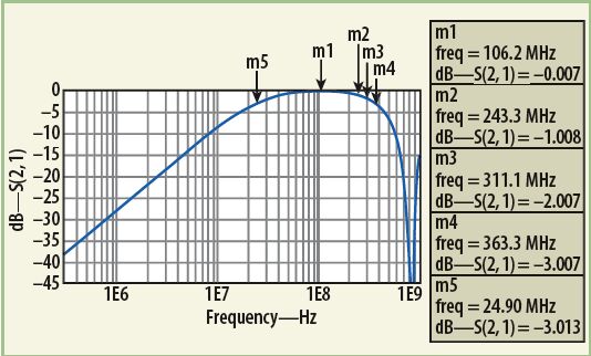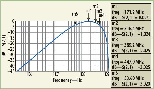 盡管三組結果是由不同的方法求出的,但它們彼此吻合良好。分析(MATLAB)和數值(ADS)模型獲得的響應與實驗獲得的響應(VNA測量值)比較起來十分接近。利用分析和數值方法獲得的值近似相等,但與實驗結果相比有少許差異。最好的解釋是,理論模型沒有把變壓器結構中所采用的各元件的復雜特性完全考慮在內,而是按照幾乎“理想”的元件來建模的。