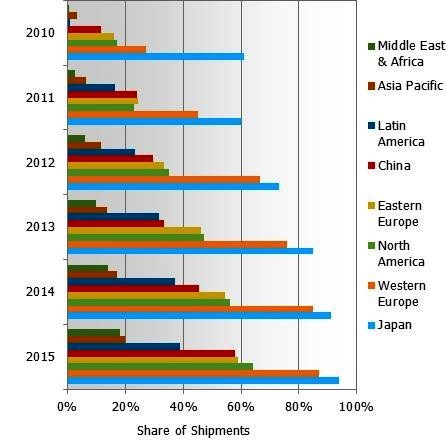 DisplaySearch 最新公布的報告(Quarterly TV Design and Features Report)指出,2011年全球將有超過27%的電視具備連網功能,該比例到2015年將上升為54%,出貨量達到15500萬臺。其中拉丁美洲地區 2011年有16%的電視機具備連網功能。