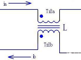 圖1所示的是共模電感的濾波電路,Tr2a和Tr2b就是共模電感L的兩個(gè)線圈。這兩個(gè)線圈繞在同一磁芯上,匝數(shù)和相位都相同。這樣,當(dāng)電路中流過電流ia和ib的大小相同、方向相反時(shí),電流在同相位繞制的電感線圈中產(chǎn)生反向的磁場(chǎng)而相互抵消,磁芯中沒有交變的磁通量產(chǎn)生。