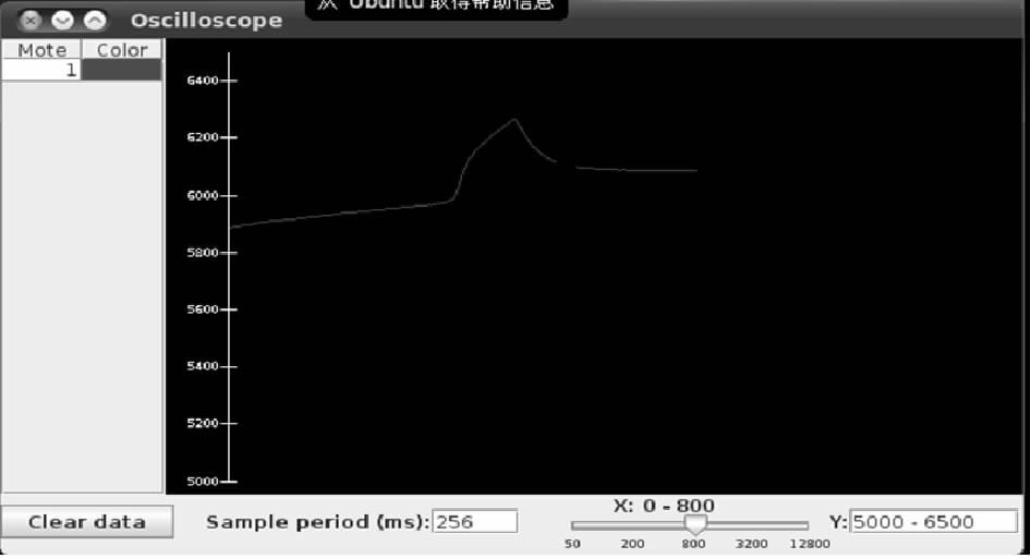 TinyOS是UC Berkeley開發(fā)的開放源代碼操作系統(tǒng),專為嵌入式無(wú)線傳感器設(shè)計(jì),操作系統(tǒng)基于構(gòu)件的架構(gòu)使得快速更新成為可能,而這又減小了受傳感器網(wǎng)絡(luò)存儲(chǔ)器限制的代碼長(zhǎng)度。TinyOS的構(gòu)件包括網(wǎng)絡(luò)協(xié)議、分布式服務(wù)器、傳感器驅(qū)動(dòng)及數(shù)據(jù)識(shí)別工具。其良好的電源管理源于事件驅(qū)動(dòng)執(zhí)行模型,該模型也允許時(shí)序安排具有靈活性。因此對(duì)于整個(gè)無(wú)線傳感器網(wǎng)絡(luò)的驗(yàn)證采用TinyOS操作系統(tǒng),設(shè)計(jì)為兩個(gè)節(jié)點(diǎn),節(jié)點(diǎn)A負(fù)責(zé)采集溫度濕度數(shù)據(jù),然后將采集到的數(shù)據(jù)發(fā)送到另一個(gè)節(jié)點(diǎn)B,節(jié)點(diǎn)B接收到數(shù)據(jù)后,通過USB將數(shù)據(jù)傳輸?shù)絺€(gè)人電腦,并將該數(shù)據(jù)通過圖表顯示,如圖10所示。
