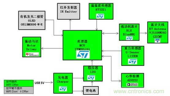 圖示4-大聯大世平基于ST STM32L151 光采集監測心率手表功能框圖