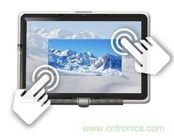 觸摸屏的功能發(fā)展由簡(jiǎn)及繁,最初的產(chǎn)品只支持最簡(jiǎn)單的操[LU4]控,就是一個(gè)手指觸摸屏幕上的一點(diǎn)來(lái)實(shí)現(xiàn)操控。比如我們每天在附件超市的POS終端機(jī),或者在機(jī)場(chǎng)的check-in終端上進(jìn)行的操作。以前,我們只能通過(guò)屏幕周邊的機(jī)械按鈕進(jìn)行操控,單點(diǎn)觸摸屏在此基礎(chǔ)上實(shí)現(xiàn)了用戶界面方面的一大進(jìn)步。當(dāng)然,機(jī)械和新型電容式觸摸感應(yīng)按鈕在我們的家庭、辦公室及其他地方無(wú)所不在:手機(jī)、固定電話、遙控器、電視、電腦及其各種外設(shè)、游戲機(jī)、電冰箱、微波爐、烤箱,以及無(wú)線電和空調(diào)等車(chē)內(nèi)電子控制設(shè)備等等。現(xiàn)在,如下列圖1所示的單點(diǎn)觸摸屏在顯示屏上直接集成了用戶控制界面,因此再也不需要傳統(tǒng)的機(jī)械按鈕了。