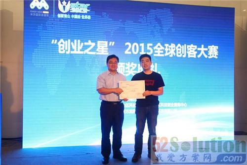 圖1,在2015全球創客大賽中,銀河風云的悟空i8項目獲得一等獎
