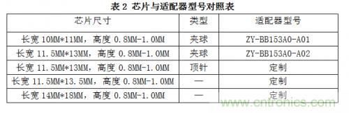 針對不同封裝的芯片,將有不同的適配器型號(hào)與之對應(yīng),如表2所示。