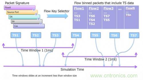 硬件仿真的標志之一是,它能對大型復雜系統(tǒng)進行復雜性能分析。某些情況下,可能需要數(shù)百萬個數(shù)據(jù)包才能切中當前設計中穩(wěn)態(tài)分析的要點。以測量百萬兆以太網(wǎng)交換機的流量比特率為例。可以采用虛擬以太網(wǎng)簽名生成和數(shù)據(jù)包時間戳 (TS) 來計算這些測量。