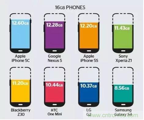 以下是一些旗艦級的手機16G空間實際可用的空間的對比圖。