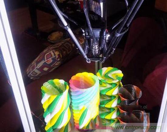 據(jù)了解,Powell用來改裝的是一臺Rostock Max,這是市場上相當(dāng)流行的一款桌面型Delta式3D打印機(jī),售價(jià)在1000美元左右。盡管Powell通過Rostock Max的改裝已經(jīng)成功地3D打印出了彩色對象,但是他承認(rèn)該項(xiàng)工作仍然在進(jìn)行過程中。他在視頻網(wǎng)站Youtube上發(fā)布了一段16分鐘的視頻,詳細(xì)記錄了他將自己的Delta式3D打印機(jī)改裝為全彩色打印機(jī)的整個(gè)詳細(xì)過程,其中包括設(shè)置三個(gè)擠出機(jī)和彩色打印模式所需要的寶石熱端。Powell提醒對這個(gè)項(xiàng)目感興趣的愛好者們關(guān)注他在YouTube上的頻道,在那里他將持續(xù)發(fā)布該項(xiàng)目的最新進(jìn)展以及展示他實(shí)現(xiàn)的彩色3D打印對象。