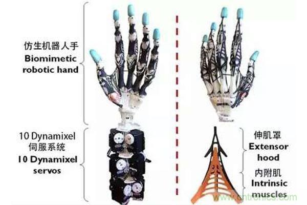 「擬人機器手設計的常規方法是,用類似鉸鏈、聯動裝置和平衡環等零件來實現生物部件的機械化,從而將看似復雜的人體參照物進行了簡化。這種方法對于理解并模仿人手的運動原理有一定幫助,但不可避免的制造了一些人與機械手之間的不良差異,因為人手上大多數顯著的生物力學特征都在機械化的過程中被丟棄了。這些機器手和人手生物力學在本質上的不匹配阻礙了我們使用自然的手部運動來直接控制它們。因此,還沒有任何一只擬人機器人手可以達到人手的靈巧程度。」