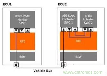 每個ECU都有為它量身定制的運行環(huán)境(RTE),通常可通過配套的設計工具來自動創(chuàng)建。真正的電子控制單元之間的實際通信將實現(xiàn)成CAN或Flex Ray總線的一部分,而運行環(huán)境通過產生工具進行配置,以便執(zhí)行相連AUTOSAR組件所需的通信路徑。運行環(huán)境可以切實執(zhí)行虛擬功能總線和架構設計流程的通信和連接拓撲。由于AUTOSAR標準支持很多不同類型的軟件組件,運行環(huán)境必須考慮各種軟件組件存在的限制和變化。