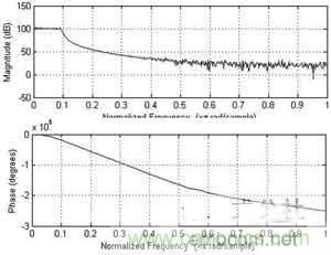 經過頻率累加器輸出的是嚴格線性增長的瞬時頻率。在實際過程中,相位累加器的輸出是經過相位截斷再進行尋址,從而引入了一定的相位誤差,雖然這一誤差會影響到線性調頻信號的線性度,但是調頻斜率為相位的二次導數,相位截斷誤差本身已很小,所以對調頻線性度的影響就更小了。在本文的Matlab實現中暫時不考慮截斷問題,忽略不計。