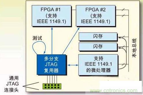 圖1:第二代JTAG應用:利用JTAG多支路復用器簡化對多個JTAG鏈的接入。