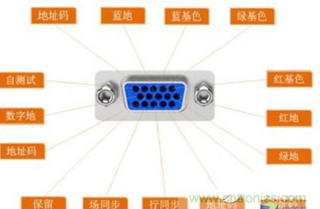 呈三列D型布置的VGA各個針腳傳輸的特定信號